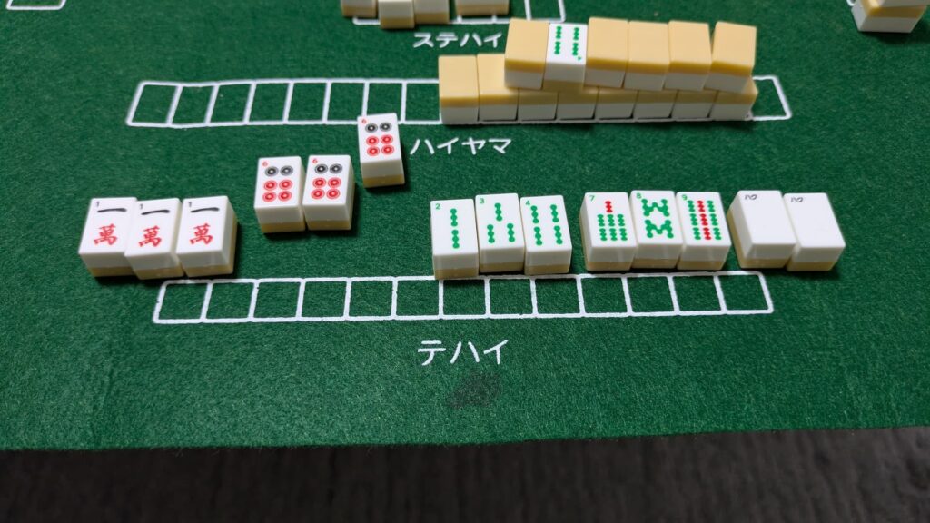 木の葉モールで買って来たビギナー用麻雀セット。初心者にもわかりやすいように牌の呼び方が小さく書いてあるんです。あと牌がとんでもなく小さい。ひやむぎのビッグハンドではなかなか扱いにくいサイズ感。まだ一番小さいサイズのMONO消しゴムのほうが持ちやすいまであります。