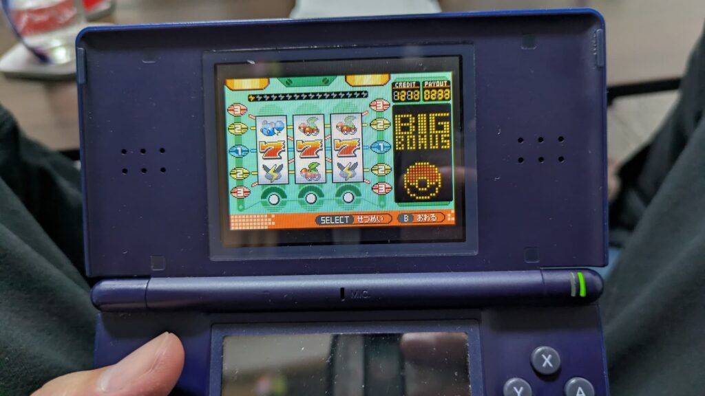 途中までは順調でしたが、大都会に出てくると旅の目的も忘れます。キンセツシティにはゲームコーナーがありまして。スロット打てば大当たり。この辺までは僕のほうがストーリーを進めていたはずだったんですが、スロカスひやむぎになったもんだからあっという間に禊に追い越されました。