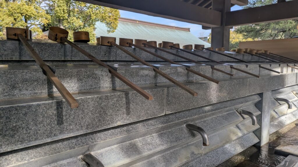 筥崎宮にお参りするのがそもそも久しぶりだからかわかりませんが、柄杓が置いてある手水舎を久しぶりに見た気がします。コロナ以降、減りましたよね。太宰府天満宮なんかただの水道みたいになってますからね。