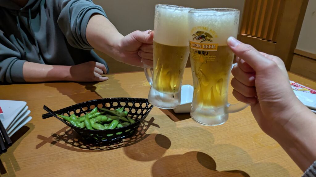 +400円してオプション飲み放題にしたのに品切れが多すぎだとか、入店直後に隣の個室に来たおっさんたちがうるさすぎて席を変えてもらったとか面倒なことはあったものの、二人で楽しく飲めました。