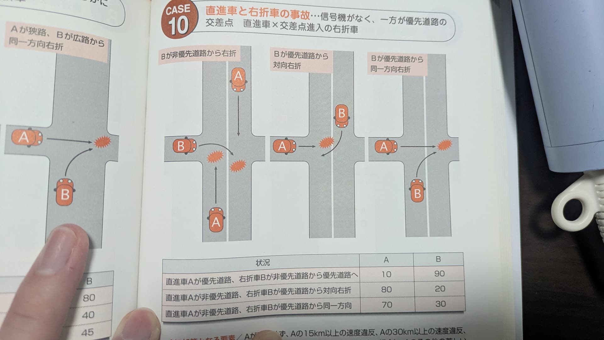優先道路直進 × 非優先道路右折の事故だと、9:1の過失割合から示談交渉がスタートするんです。(相手方保険会社の確認不足で直進×直進の8:2のスタートにされかけ、3か月くらい揉めました)