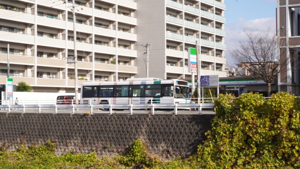 運転士さんんがコンビニに行くってことは、バスが停まっているハズ。よおし!撮りに行くぞ!