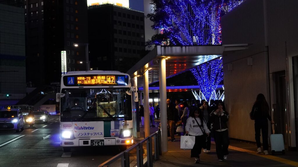 その帰り道に博多駅のクリスマスマーケットに立ち寄ったんです。ホットワイン飲みたくて。