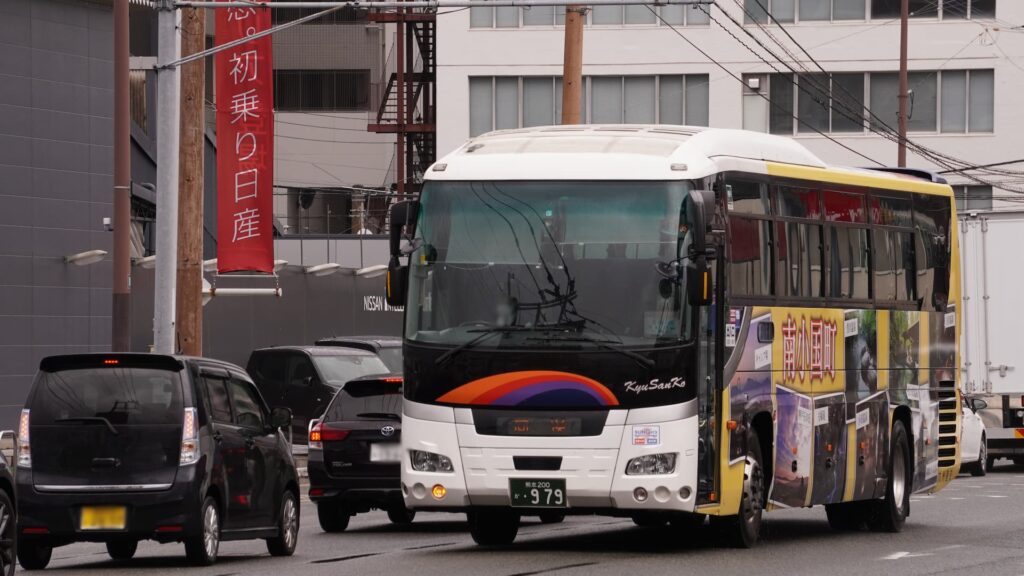 さてさてお次。今度は福岡市内に戻りまして、とはいえ福岡ナンバーじゃないバス。駅南で撮った九州産交バスです。オレンジと青のカラーリングがいいですよね。