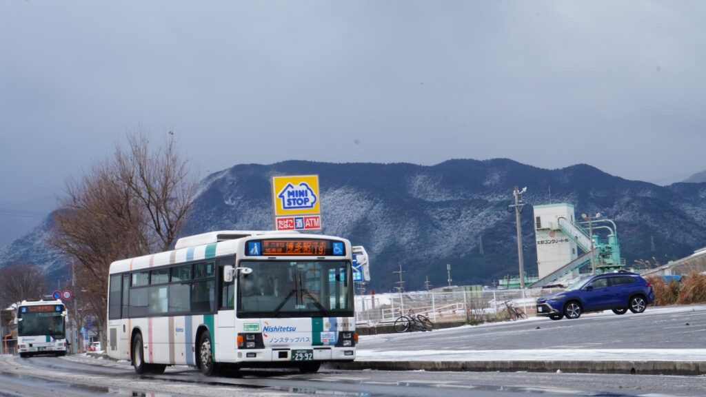 そして無事2種免許を受け取った帰り、せっかくならバスで帰ろうと思い立って向かった飯塚BTから乗ったのがこんなバスでした。車号まで同じじゃなかったと思いますが。