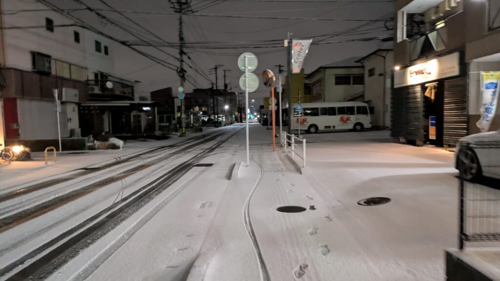 今年(2025年)の1月、唐突にものすごい雪が降った時がありましたが、我が家の周りはこんな感じ。しっかり雪が積もりました。夜中の2時です。