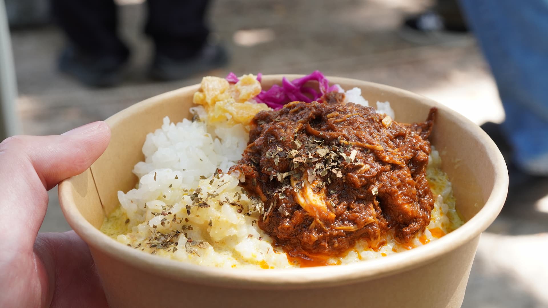 パキスタンのカレーがどんなものなのかが気になったもので。普段の僕なら牛すじカレーを選んでいたんでしょうけれど、せっかくカレーフェスがあっていろんなカレーを食すチャンスがあるのなら!