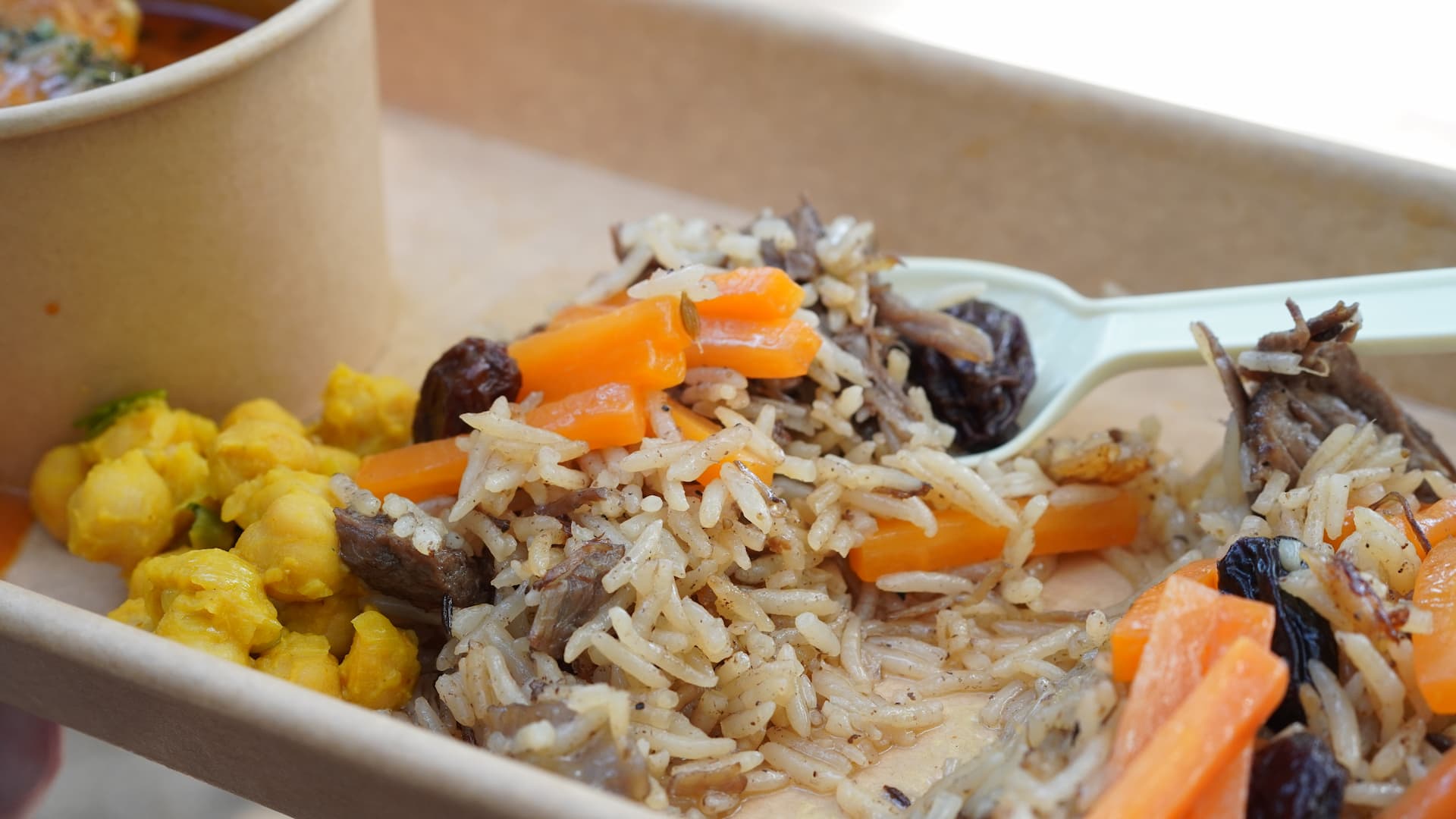 パラパラっとしたタイ米に人参とレーズン。一見ミスマッチではと思う組み合わせでしたが、タイ米の味って国産米のそれとは違うんですよね。何と言うか、甘さ控えめ。それに粒が小さめで細いから、そこまで主張してこないんです。
